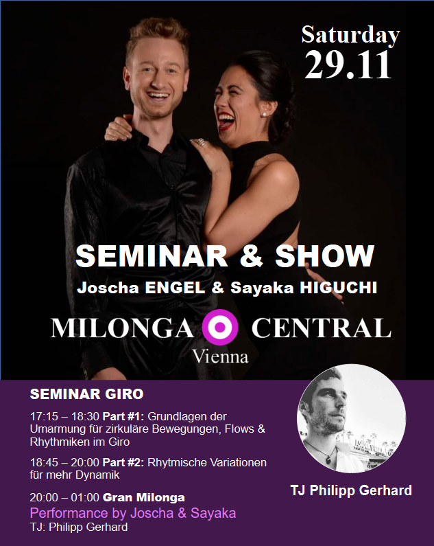 Join us for workshop classes and unforgetable Milongas in the city center of Vienna.